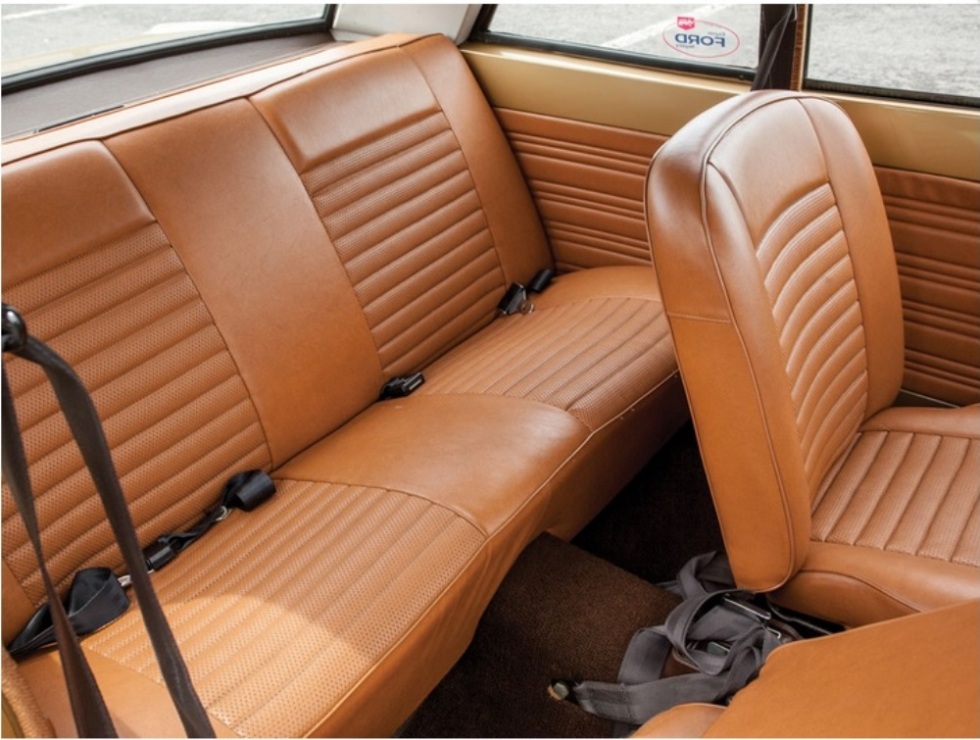The interior is also totally original, and note that the painted parts are body colour as the interior colour is not black. The ‘Saddle’ coloured interior may not be to everybody’s taste, although many Amber Gold 1600E cars had this colour trim.